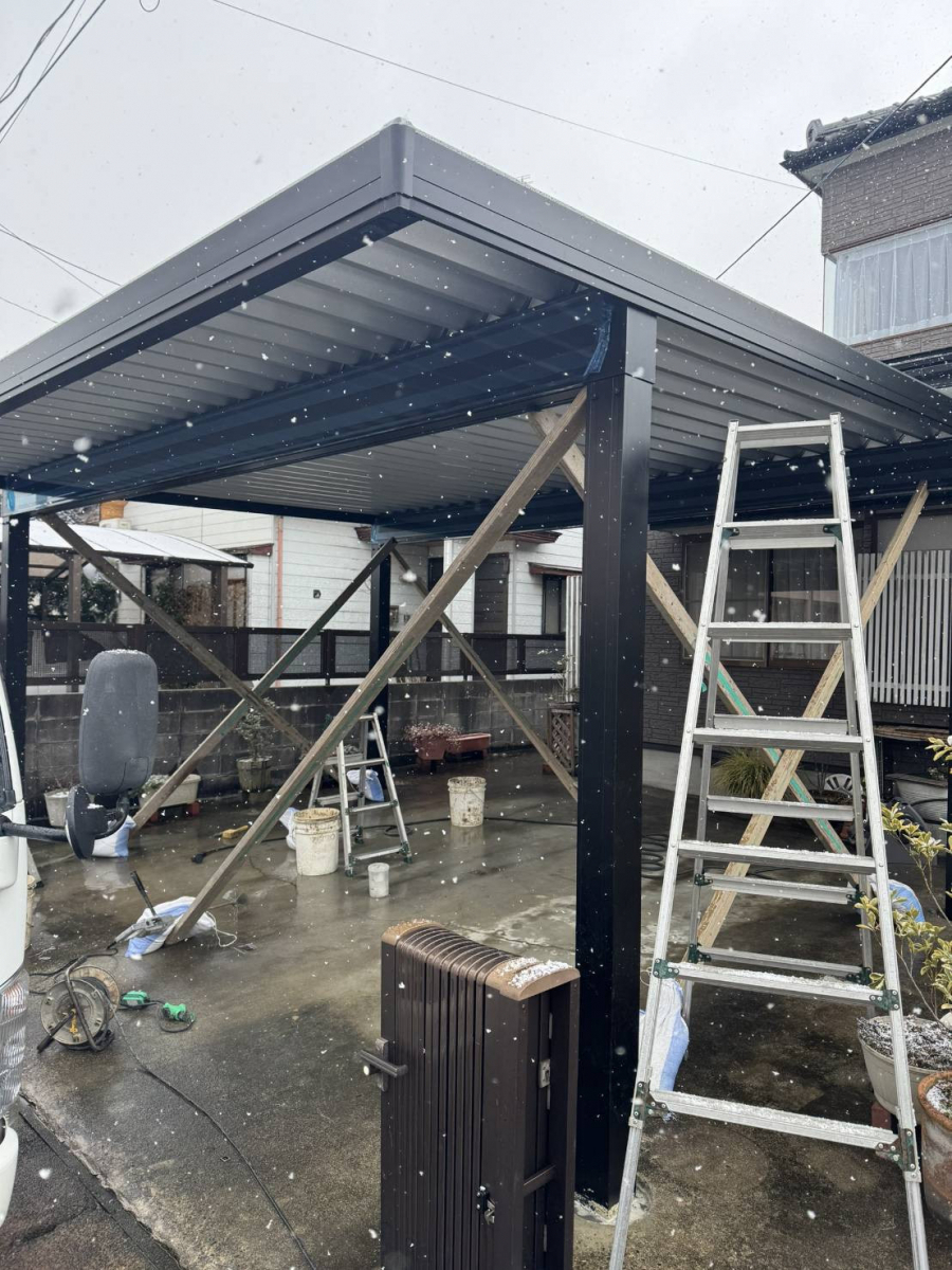 雪の重みでパネルカーポートが壊れたとご連絡いただきました。